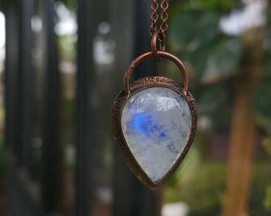 Pink and Gold Labradorite Pendant, Copper Bezel