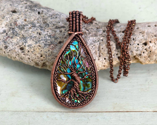 Tree of Life Pendant, Copper, Abalone